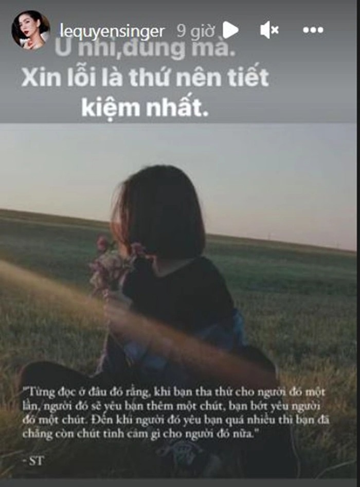 Mới đây, trên Instagram cá nhân, Lệ Quyên bất ngờ chia sẻ dòng trạng thái dài với nội dung đầy tâm trạng: "Từng đọc ở đâu đó rằng, khi bạn tha thứ cho người đó 1 lần, người đó sẽ yêu bạn thêm 1 chút, bạn bớt yêu người đó 1 chút. Đến khi người đó yêu bạn quá nhiều thì bạn đã chẳng còn chút tình cảm gì cho người đó nữa".