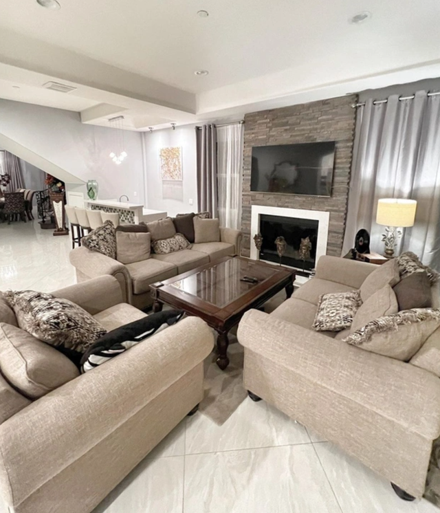 Vào sáng 10/7, Lệ Quyên đã "flex" tổ ấm hiện đại, đầy đủ tiện nghi ở xứ sở cờ hoa. Có thể thấy căn biệt thự rộng rãi, được sơn theo tông chủ đạo là màu trắng - xám. Nữ ca sĩ sinh năm 1981 hào hứng chia sẻ: "Ở bên này tự tay chăm sóc nhà cửa thích thật. Tổ ấm nào của mình cũng thông thoáng, dấu hết đồ vào tủ, luôn phải sạch bóng kin kít". Đặc biệt, ở story tiếp theo, bạn gái Lâm Bảo Châu còn khéo léo "flex" chiếc tivi có kích cỡ "khủng": "Phòng rộng quá nên TV bằng nửa bức tường mới ổn".
