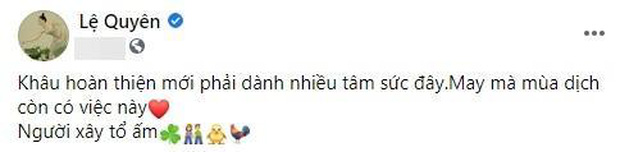 Mới đây nhất, trên trang cá nhân của mình, Lệ Quyên khoe hình ảnh căn biệt thự mới tại Sài Gòn, bên trong chất đầy nội thất sang chảnh, đang trên đà hoàn thiện. Không gian mang tông màu trắng chủ đạo, nhà có nhiều cửa sổ tạo sự thoáng mát. Được biết, căn biệt thự này được nữ ca sĩ cho xây dựng từ rất lâu nhưng bị hoãn lại vì tình hình dịch bệnh. Ngoài ra, qua những lần giọng ca Sầu Tím Thiệp Hồng tung "hint" về cơ ngơi mới, nhiều người còn đồn đoán đây là tổ ấm của Lệ Quyên và người yêu kém tuổi Lâm Bảo Châu.