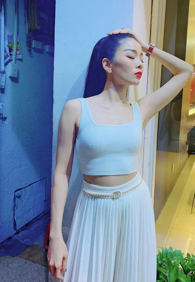 "Vui vui thư giãn qua mùa dịch nào. Chị em ơi, chịu khó tập thể dục nhé. Thanh xuân là mãi mãi", Lệ Quyên nhắc nhở mọi người.