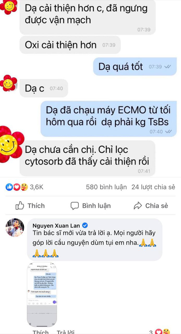 Tối ngày 27/8, trên mạng xã hội liên tục lan truyền tin ca sĩ Phi Nhung qua đời sau thời gian điều trị Covid-19 khiến cư dân mạng vô cùng hoang mang. Diễn viên Quốc Thuận và phía đại diện ca sĩ Phi Nhung đã bác bỏ tin đồn thất thiệt này. Siêu mẫu Xuân Lan cũng lập tức tung đoạn chat với người thân Phi Nhung trao đổi với bác sĩ lên trang cá nhân. Cô cho biết Phi Nhung vẫn đang chiến đấu với Covid-19.