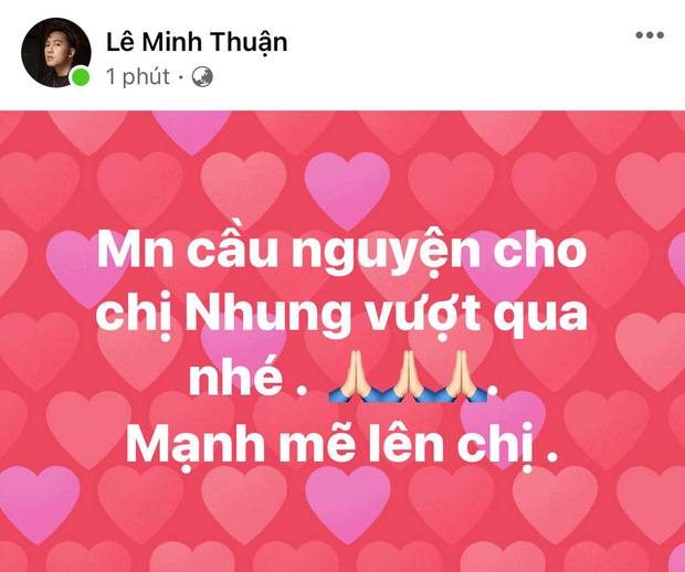 Hiện tại, trên mạng xã hội đã có rất nhiều nghệ sĩ Việt như Việt Hương, Hồng Vân, Phương Thanh, Lệ Quyên,... đã đăng tải những dòng trạng thái cầu nguyện cho Phi Nhung mạnh mẽ chống chọi với căn bệnh này. Ai cũng lo lắng cho tình hình của nữ ca sĩ.