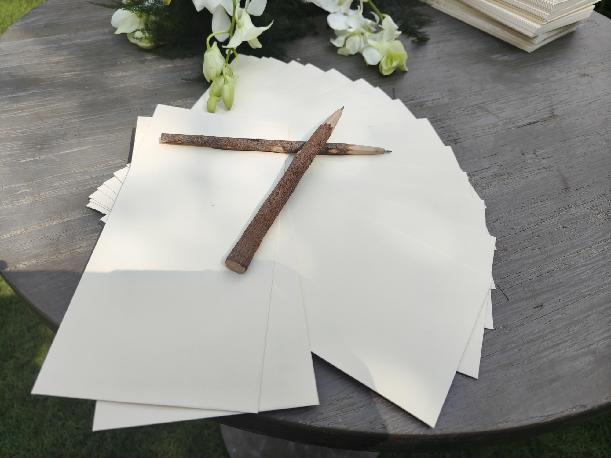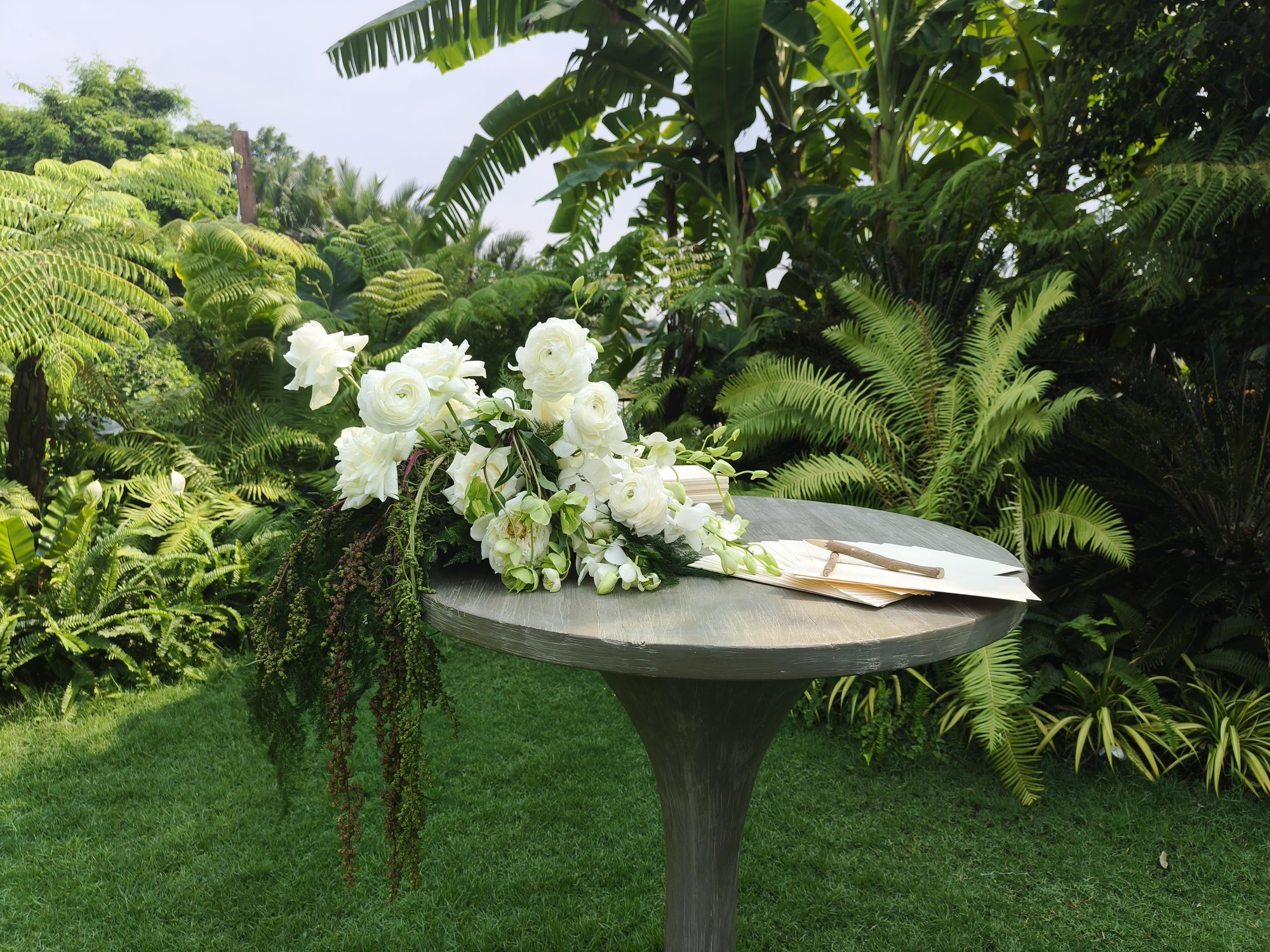Toàn bộ bày trí tại buổi lễ thành đôi đều dựa trên ý tưởng của Vũ Cát Tường, ca sĩ mong muốn có một ngày vui gần gũi với thiên nhiên nhất có thể. Lễ thành đôi được thiết kế với 2 màu chủ đạo là xanh lá và màu trắng. Được biết, hoa được sử dụng trong buổi lễ là tulip trắng - loài hoa mà Bí Đỏ yêu thích.