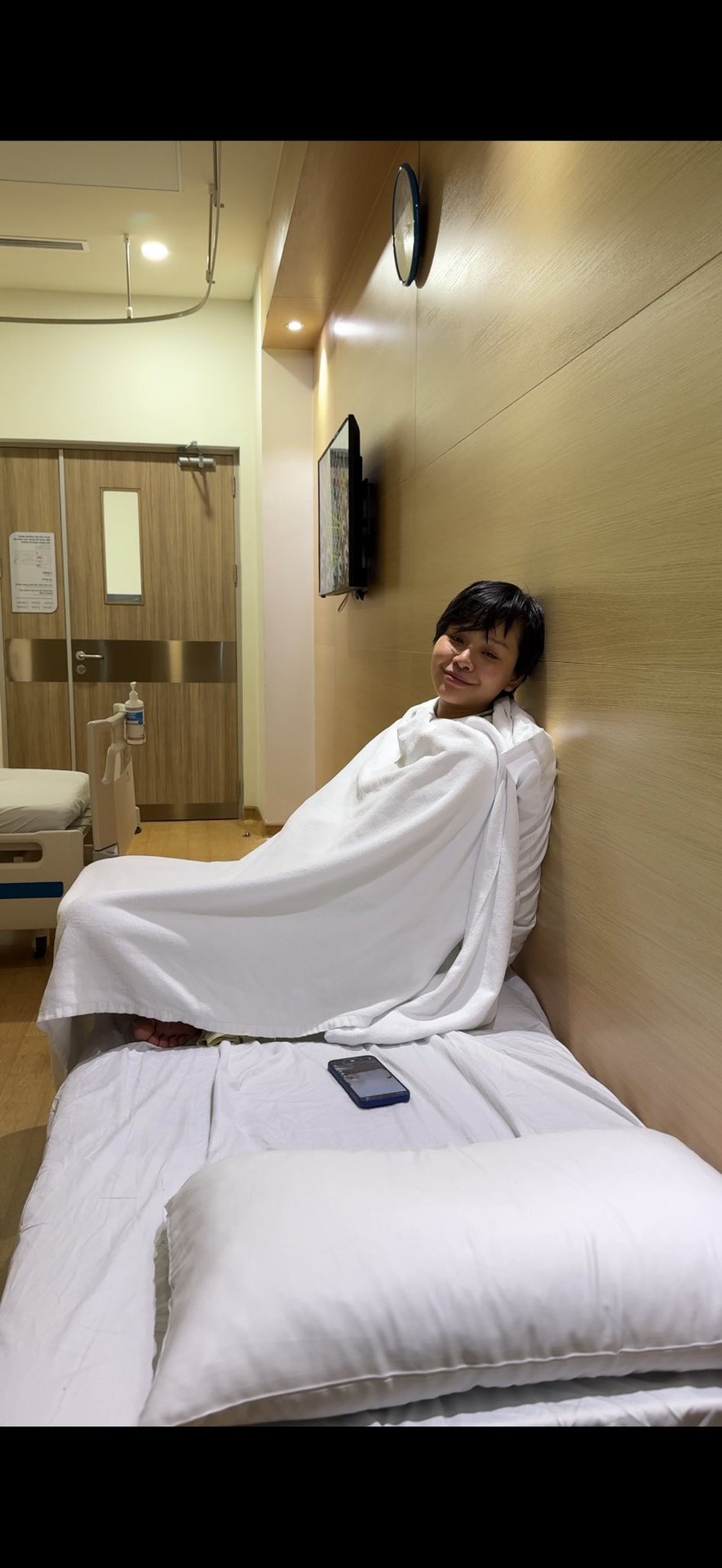 Lê Thu Trang chia sẻ: "Những ngày qua tôi nằm viện, 5 năm quen nhau tôi chưa từng bị bệnh nặng. Đây là lần đầu tiên tôi nhìn thấy anh tất bật, chạy đôn chạy đáo lo lắng cho tôi đầu tóc rối bời. Chỉ một cái trở mình, 1 cái thở dài của tôi trong đêm anh cũng bật dậy và hỏi có sao không, đau ở đâu không?