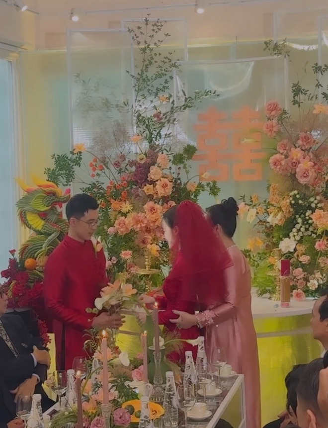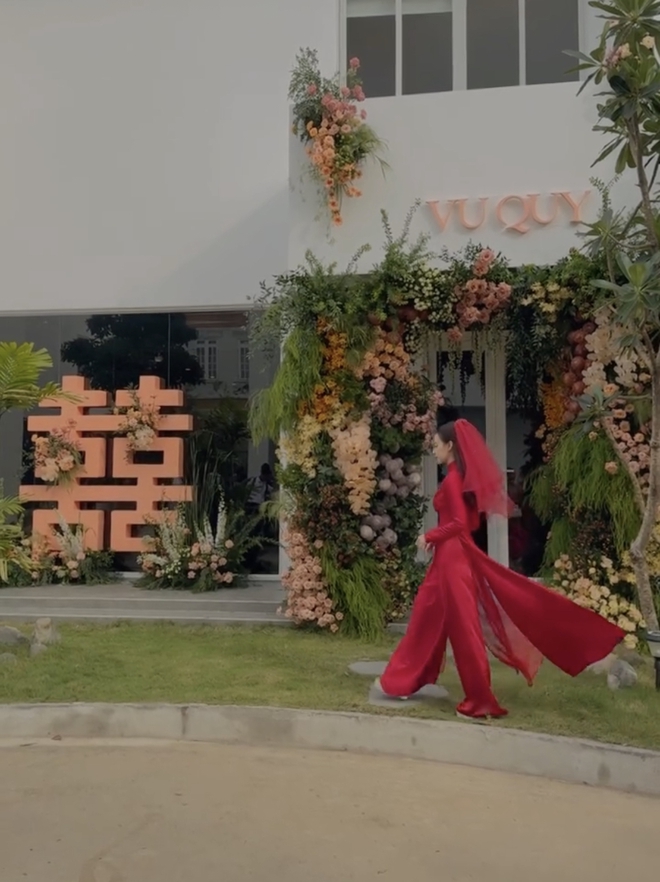 8h20: Cô dâu Midu diện áo dài đỏ, biệt thự trang trí ngập hoa tươi