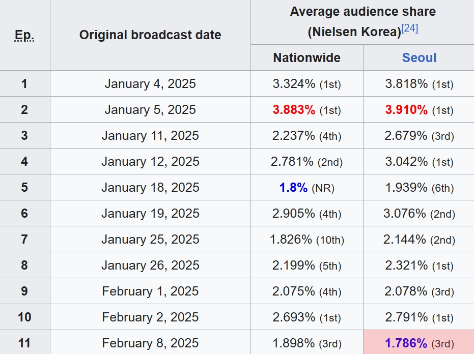 Mới đây, tập 11 của bộ phim When the stars gossip đã phát sóng và một lần nữa thiết lập nên những thống kê rất đáng buồn. Theo dữ liệu từ Nielsen Korea, phim ghi nhận rating 1.898% trên toàn Hàn Quốc, tiệm cận với con số thấp kỷ lục 1.8% của tập 5 chiếu hôm 18/1/2025.