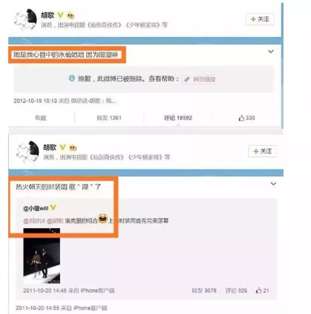 Không dừng lại ở đó, netizen còn tìm ra scandal từ nhiều năm trước của Hồ Ca để cho thấy anh không tôn trọng phái yếu. Trong quá khứ, anh từng bị chỉ trích vì đùa quá trớn với Lưu Thi Thi. Cụ thể, khi đăng tải bài viết trên Weibo, Hồ Ca đã gọi Lưu Thi Thi bằng 1 từ ngữ khiếm nhã, ám chỉ gợi dục ("Ẩm ướt"). Điều này đã khiến cho cộng đồng mạng vô cùng phẫn nộ, cho rằng dù anh và Lưu Thi Thi là bạn bè thân thiết thì cách trêu chọc như vậy cũng rất bất lịch sự.