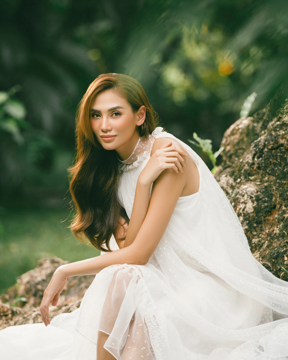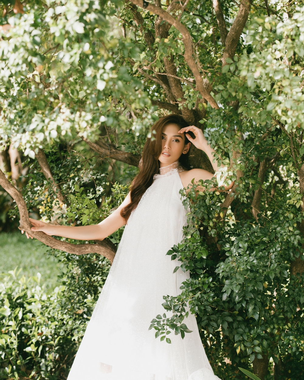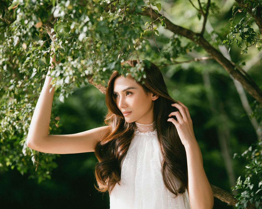 Hoàng Yến chia sẻ: "Đối với Yến, diễn chặt chém, diễn ngầu, thậm chí diễn nét menly còn dễ hơn những concept yêu cầu sự mỏng manh tinh tế thế này, nhưng không gì làm khó được em cả, vì thật sự em rất nữ tính đó. Nhiếp ảnh gia Rin Trần đã vô cùng khéo kéo ghi lại những khoảnh khắc, một em "Mây trắng" giữa bạc ngàn rừng xanh".