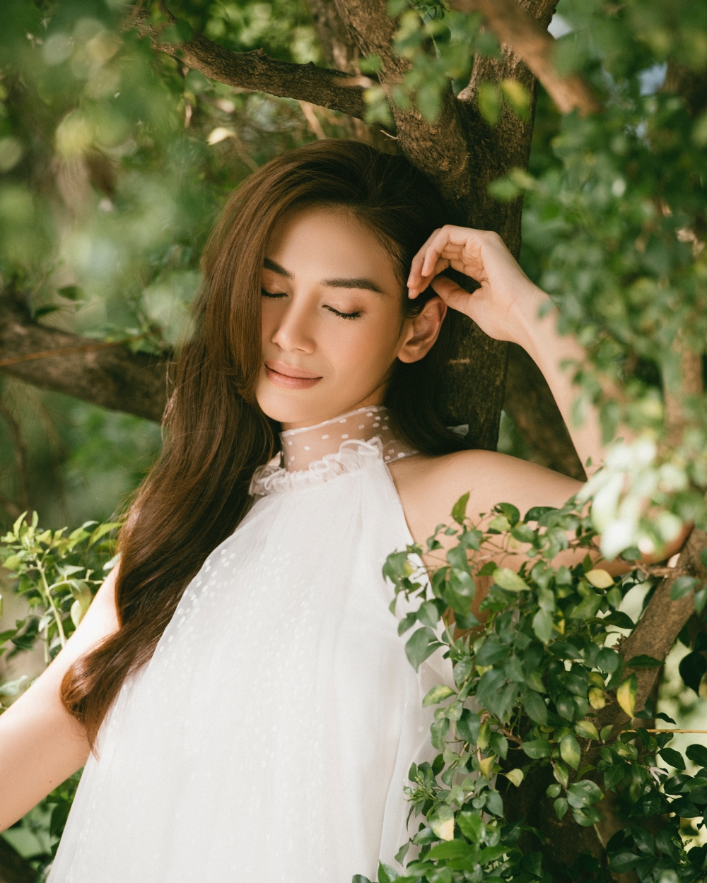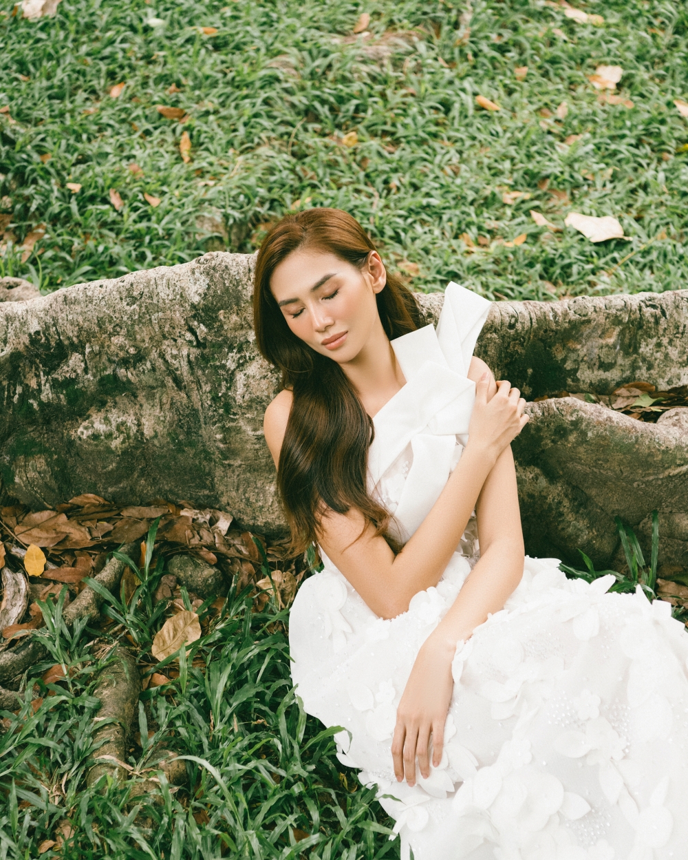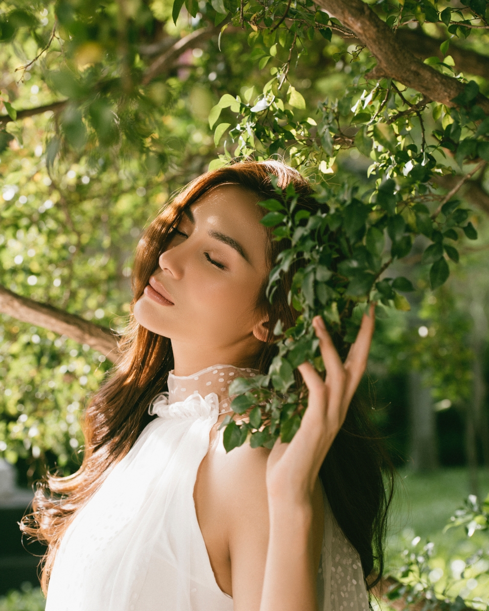 Hoàng Yến chia sẻ: "Đối với Yến, diễn chặt chém, diễn ngầu, thậm chí diễn nét menly còn dễ hơn những concept yêu cầu sự mỏng manh tinh tế thế này, nhưng không gì làm khó được em cả, vì thật sự em rất nữ tính đó. Nhiếp ảnh gia Rin Trần đã vô cùng khéo kéo ghi lại những khoảnh khắc, một em "Mây trắng" giữa bạc ngàn rừng xanh".