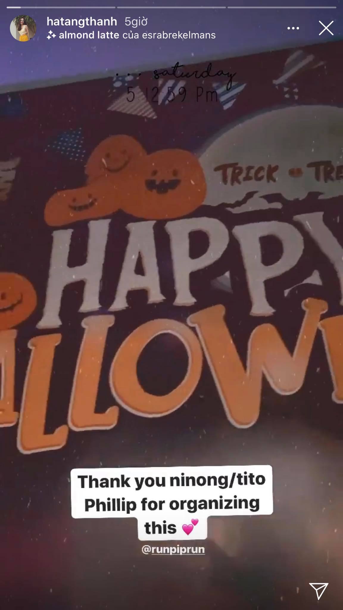 Bên cạnh đó, Linh Rin và Hà Tăng cũng đều khoe không gian của buổi tiệc Halloween do chính Phillip Nguyễn chuẩn bị. Điều này cho thấy nàng hot girl Hà Thành đang tham gia buổi tiệc cùng với gia đình Phillip Nguyễn. Động thái nhỏ nhưng cũng đủ chứng minh cô nàng khá được lòng các thành viên nhà chồng Hà Tăng khi liên tục được mời đến các bữa tiệc gia đình.