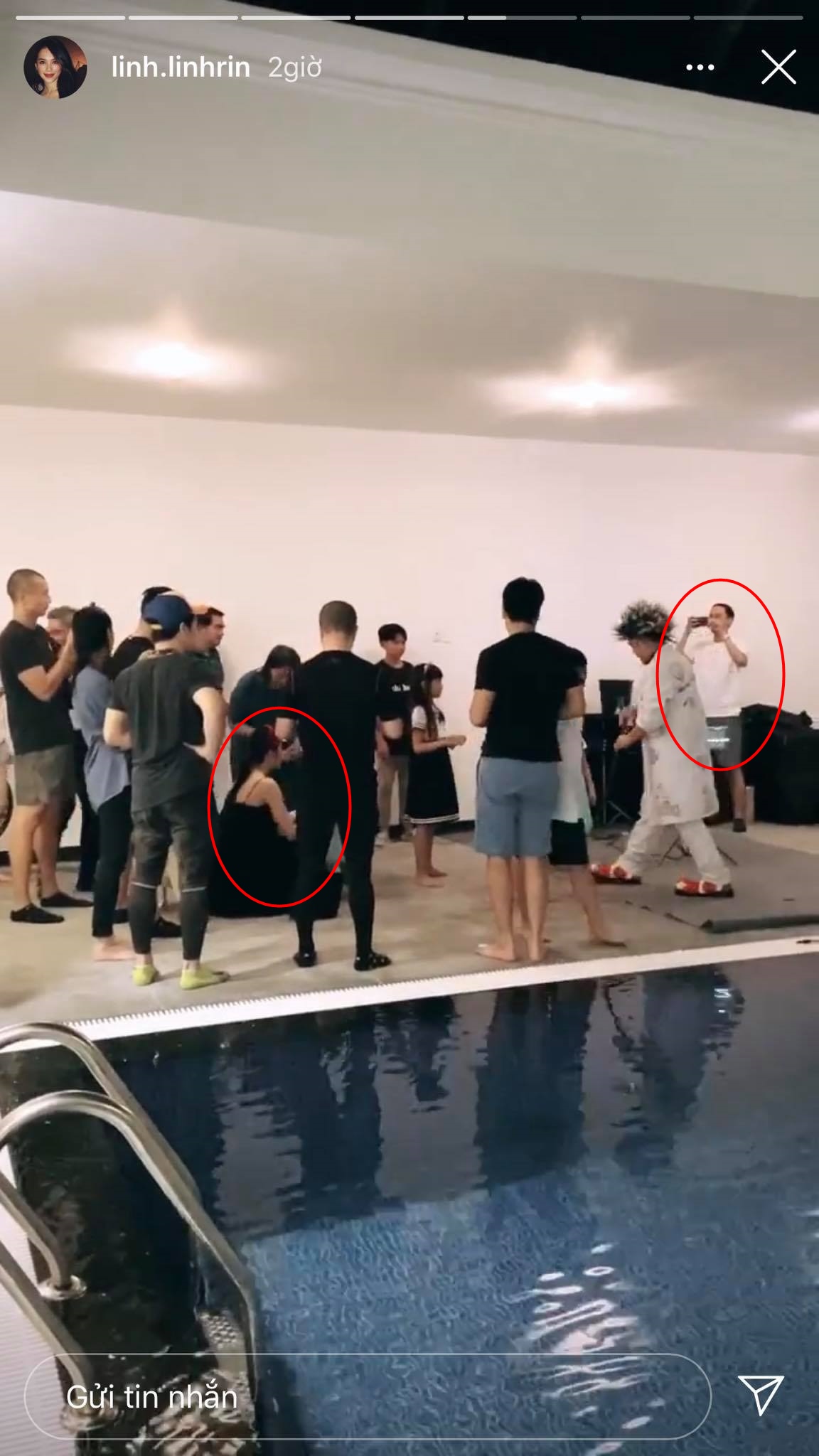 Thậm chí, nếu nhìn kỹ trong khung hình thì dễ dàng phát hiện ra Hà Tăng mặc váy đen, đang ngồi bệt tạo dáng chụp ảnh với mọi người, còn Louis Nguyễn đang cầm điện thoại chụp ảnh.