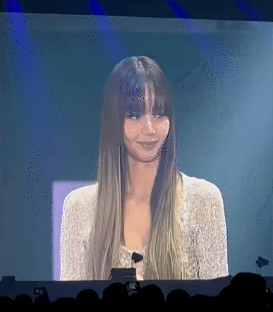 Trong buổi fanmeeting, Lisa cũng hé lộ những tấm hình chưa từng công bố với người hâm mộ trong điện thoại của mình. Một trong những hình ảnh được nàng em út BLACKPINK chia sẻ đó chính là khoảnh khắc cô có mặt tại giải đua xe F1 Miami Grand Prix. Thế nhưng, bức ảnh này ngay lập tức khiến Lisa bị các fan “dí” khi tất cả đồng thanh hô lớn hỏi cô đi cùng ai. Khi nhận ra mình bị fan hỏi khó, Lisa không giấu được sự ngại ngùng.