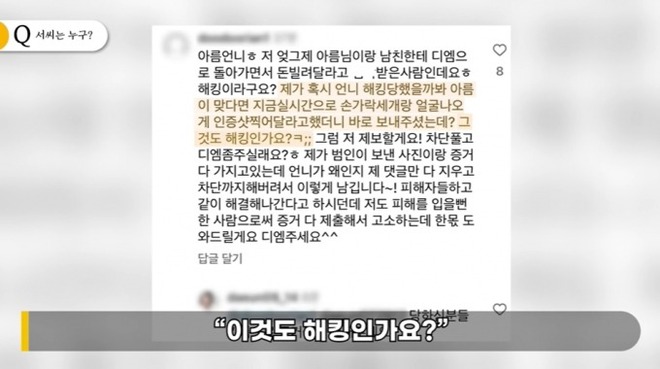 Lee Jin Ho liên hệ trực tiếp với Seo Dong Hoon và nhận được câu trả lời: "Tôi nhắn tin hỏi vay tiền fan 1-2 lần theo yêu cầu của Ahreum. Tuy nhiên có những tin nhắn tôi không trực tiếp gửi. Tôi không thể biết chính xác đây là hacker hay là Ahreum gửi. Cô ấy biết mật khẩu tài khoản của tôi. Tôi cũng là nạn nhân. Vì còn nhiều uẩn khúc nên tôi dự định tổng hợp bằng chứng và nộp cho cơ quan điều tra. Trên thực tế, tôi thậm chí đã gửi đơn khiếu nại đến cảnh sát".