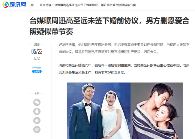 Ngày 22/5, giới truyền thông Đài Loan đưa tin về việc Châu Tấn và Cao Thánh Viễn đã ly hôn. Điều khiến tin đồn này tiếp tục nổi lên là do Cao Thánh Viễn xóa toàn bộ hình ảnh của anh cùng Châu Tấn trên trang cá nhân.