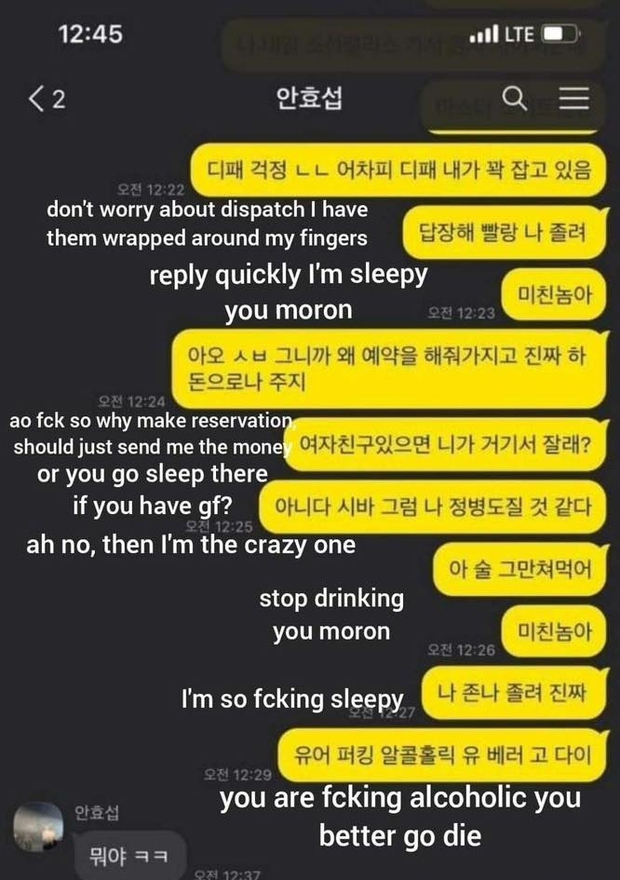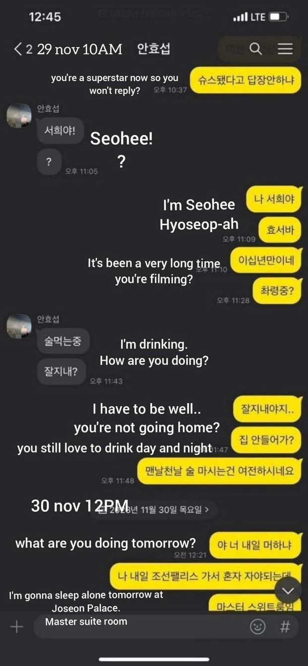 Toàn bộ cuộc trò chuyện của Han Seo Hee và chàng trai được cho là Ahn Hyo Seop có nội dung như sau: