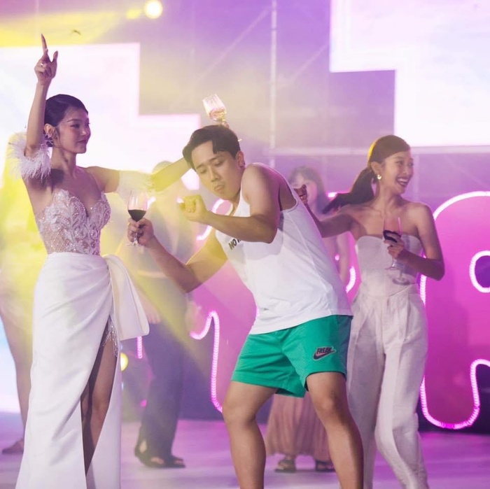 Theo đúng như kế hoạch, sau buổi tiệc chiêu đãi, cá khách mời sẽ bắt tay vào phần hội. Khác với những bộ vest, váy áo lộng lẫy vào buổi chiều, các sao Việt như Trấn Thành, Khả Như, Đông Nhi đều thay những trang phục đơn giản để "dẩy đầm".