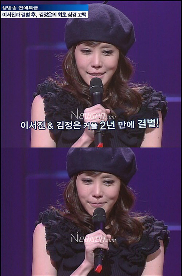 Cụ thể, xuất hiện trong chương trình "Kim Jung Eun Chocolate" hồi cuối tháng 11/2008, nữ diễn viên tâm sự về cuộc tình thất bại: "Dù cảm thấy rất đau đớn nhưng tôi vẫn phải giả bộ như không có chuyện gì xảy ra. Có lẽ cần phải mất một thời gian nữa, tôi mới có thể vượt qua nỗi đau này".