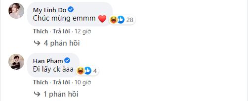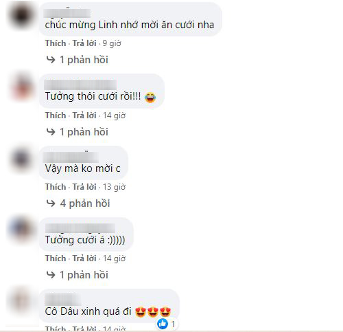Diễn viên Bảo Hân không giấu được sự ngạc nhiên và nhắn hỏi Lương Thùy Linh liệu có phải đi lấy chồng hay không, Hoa hậu Đỗ Mỹ Linh thậm chí còn gửi lời chúc mừng đàn em ngay bên dưới bài đăng, đông đảo bạn bè cũng như cư dân mạng đều rộn ràng trước tin vui này.