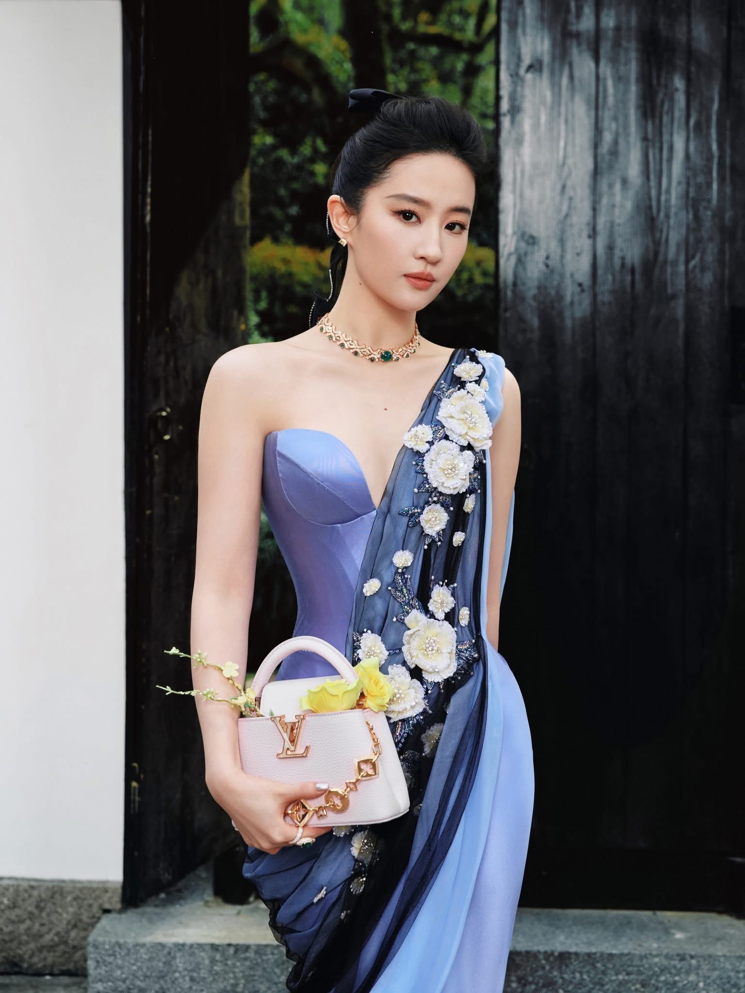 | Vóc dáng thanh thoát và những bước đi uyển chuyển như lướt trên bậc thang của Lưu Diệc Phi |