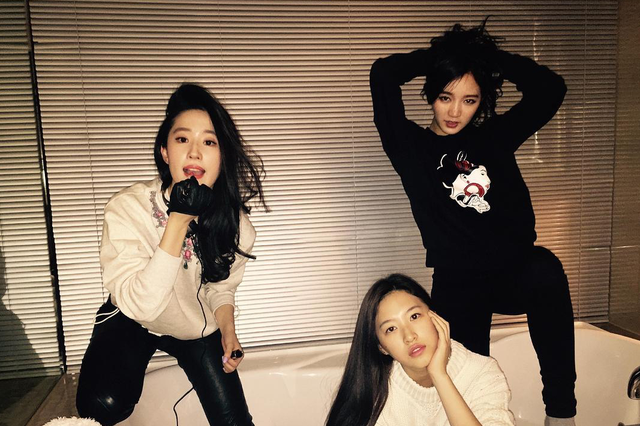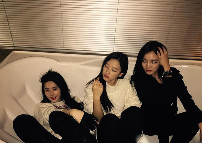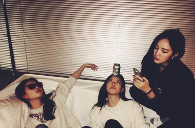 Đầu tháng 8 vừa qua, cô bị "đào mộ" lại loạt ảnh tiệc tùng với Jia - cựu thành viên Miss A. Trong ảnh, nữ diễn viên mặc quần da màu đen, gương mặt bất cần, thỏa sức tạo dáng trong bồn tắm cùng hội chị em.