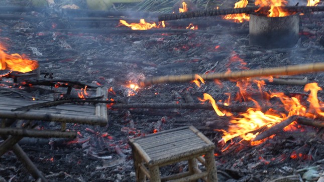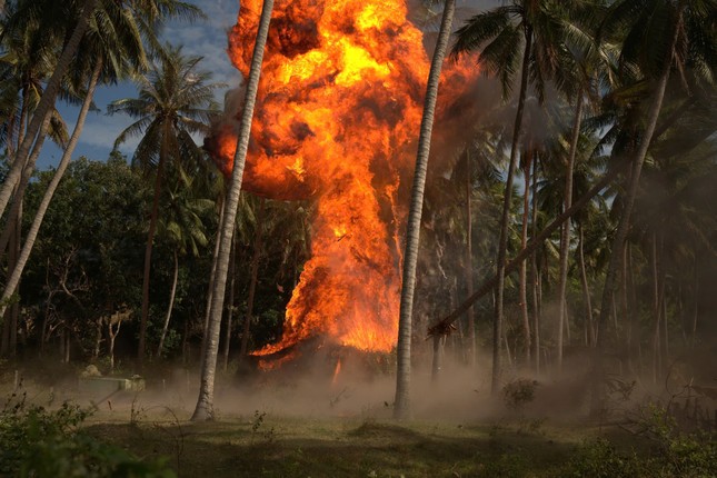 Ê-kíp cho biết họ dùng năm máy quay lớn, hai flycam quay đại cảnh cháy nổ. Diễn viên, nhân viên đoàn phim nhớ kỹ vị trí, tránh đến gần chỗ xảy ra cháy nổ. Lý Hải áp lực khi thực hiện những cú nổ trong rừng dừa, thể hiện sự thảm khốc của chiến tranh. Đại diện ê-kíp nói một máy quay bị cháy xém lúc kích nổ.