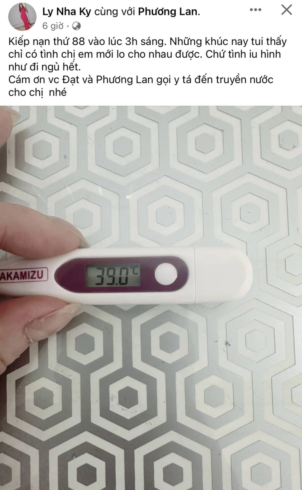 Vào ngày 27/11, Lý Nhã Kỳ khiến cư dân mạng vô cùng lo lắng khi chia sẻ bản thân gặp "kiếp nạn thứ 88" về sức khoẻ vì bị sốt cao tới 39 độ C vào lúc 3 giờ sáng. Tuy nhiên, Lý Nhã Kỳ đã được 2 đàn em là diễn viên Phương Lan - Phan Đạt hỗ trợ gọi y tá tới truyền nước kịp thời.