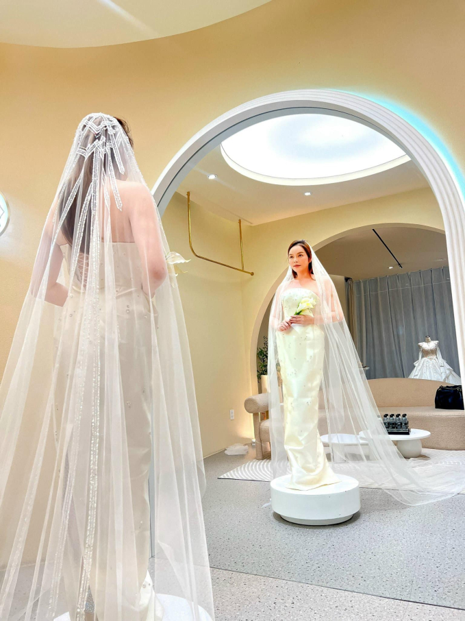 Tôi đang tưởng tượng, nếu được mặc váy cưới và lên xe hoa thực sự chắc tôi sẽ khóc nhiều lắm. Trong tất cả các đầm của tôi, từ đầm hiệu cho đến đầm 2 tỉ này nọ, tôi chỉ thích mặc đầm cưới. Tuy nhiên, tôi hơi e ngại khi mở lòng với người mới. Chứng kiến nhiều trường hợp đổ vỡ, thậm chí sát giờ cưới vẫn chia tay, tôi không khỏi lo lắng".
