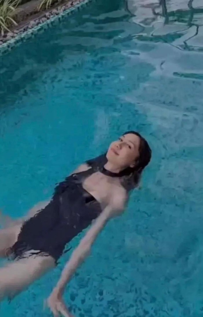 Lynk Lee lựa chọn bikini một mảnh màu đen khoe trọn ba vòng “căng đét”. Trong ảnh Lynk Lee tuy diện trang phục sexy như trông lại khá e dè trước ống kính máy ảnh.