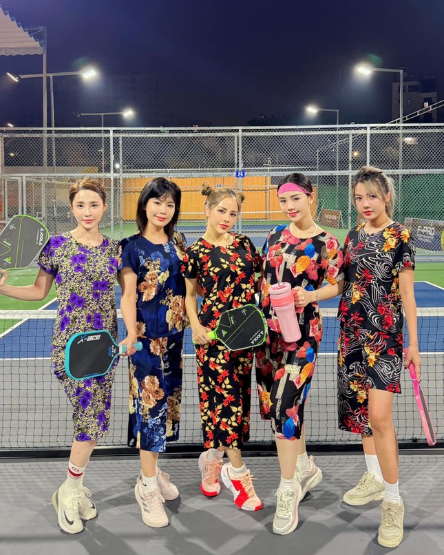Quỳnh Nga chia sẻ thêm hình ảnh "bà thím" mà cô và bạn bè chụp, đăng lên mạng xã hội chỉ là sự vui đùa của bạn bè với nhau. "Hôm sau, chúng tôi lại mặc đồ tập đi chơi pickleball", Quỳnh Nga nói.