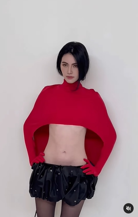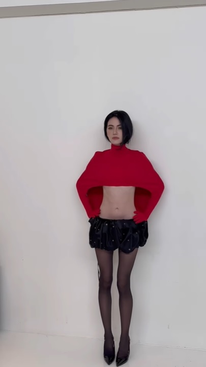 Trong video, Mai Davika diện một chiếc áo crop-top màu đỏ khoe trọn vòng eo siêu bé và mảnh mai. Chiếc chân váy ngắn khiến "ma nữ đẹp nhất Thái Lan" để lộ đôi chân gầy khẳng khiu và được cho là có phần kém sức sống.