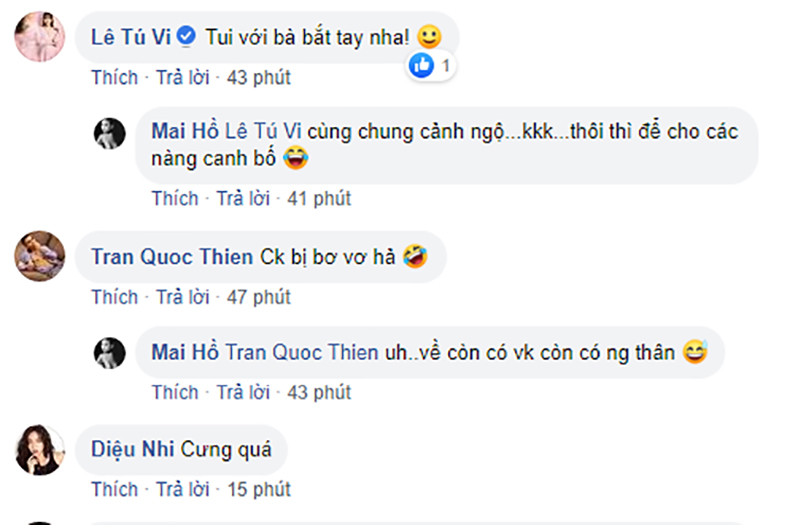 Bẫng đi 1 thời gian, mới đây, Mai Hồ lại tiếp tục khoe hình ảnh con và chồng lên trang cá nhân. Bé Mai Vi nhỏ xíu ngày nào giờ đã lớn và vô cùng đáng yêu. Cô bé quấn bố như "hình với bóng" khiến mẹ Mai Hồ phải ghen tị và hài hước hờn dỗi muốn quay về Việt Nam. Ngay sau khi đăng tải, nhiều sao Việt đã dành lời khen ngợi trước vẻ đáng yêu của bé.