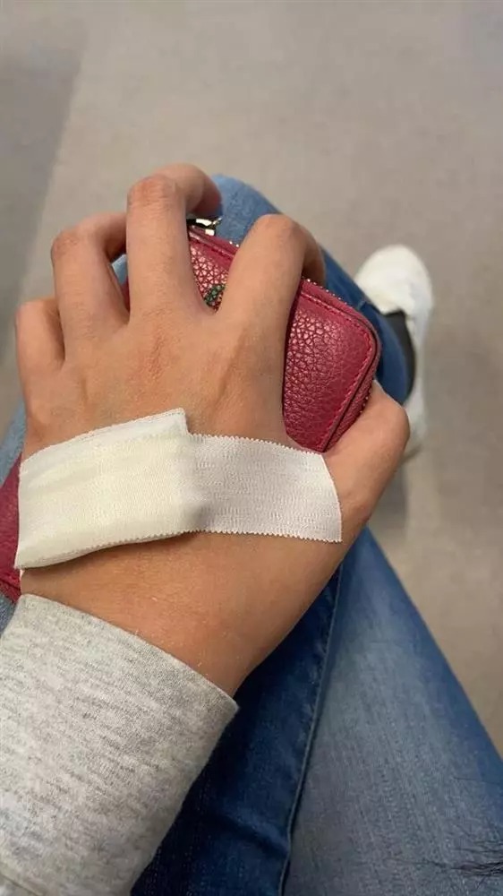 Đính kèm hình ảnh, Hoa hậu Việt Nam 2006 bày tỏ: "Bài học ở đây là có vấn đề các bạn nên đi khám ngay, đừng tự chữa như mình, giờ chỉ sợ bị sẹo thôi".