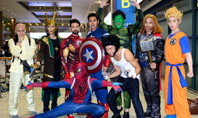 Super Junior cũng nổi tiếng là nhóm nhạc vui tính và "lầy lội" hết sức. Nhóm từng nhiều lần cosplay các nhân vật hoạt hình, phim ảnh ra sân bay. Lần nào cũng vậy, Super Junior khiến người hâm mộ cười bò với tạo hình không khác gì... gánh xiếc.