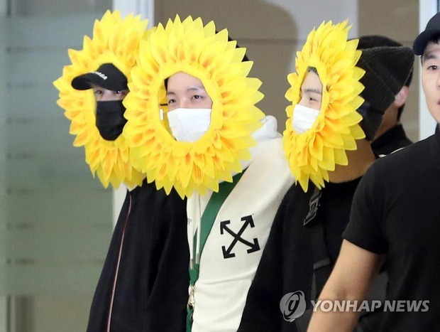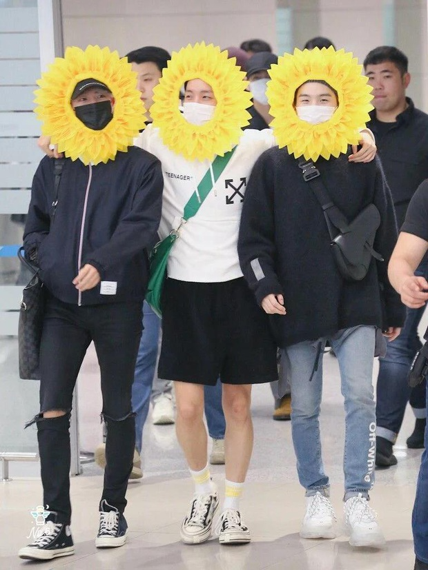 Vào ngày 10/6/2019, BTS được phen náo loạn truyền thông khi xuất hiện tại sân bay Incheon trong những chiếc mũ hoa hướng dương. Vẻ nổi bật, sặc sỡ của các thành viên BTS khiến netizen bàn tán sôi nổi, suy đoán về nguyên nhân đằng sau. Không có gì nằm ngoài dự đoán, đó chính là "hình phạt" dành cho các thành viên thua trò chơi trong chương trình Run! BTS là J-Hope, Suga và Jimin. Các thành viên cho rằng hình phạt này là quá dễ dàng. J-Hope còn phải thừa nhận là những chiếc mũ hoa hướng dương này rất đáng yêu.