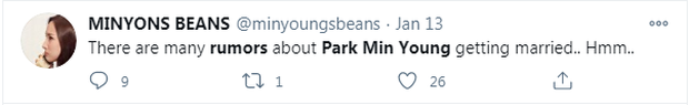 Thậm chí, netizen còn so sánh Park Min Young - Park Seo Joon là Hyun Bin - Son Ye Jin thứ 2 của màn ảnh Hàn Quốc, muốn hẹn hò bí mật và không công khai, bị "bắt tại trận" nhưng chối đây đẩy 5 lần 7 lượt. Đã có nhiều tin đồn về việc "nữ hoàng dao kéo" sẽ công khai chuyện tình cảm, thậm chí kết hôn trong năm nay.