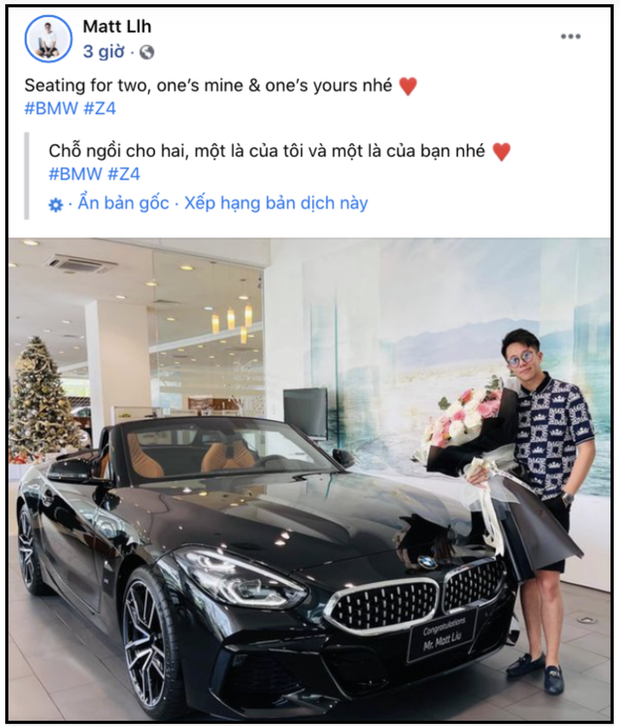 Nếu bạn để ý, đây chính là chiếc xe sang 2 chỗ ngồi mà Matt Liu đã mua vào hồi cuối tháng 12/2020. Hồi đó anh chàng còn ghi caption, ngầm nhắn gửi tới Hương Giang: "Seating for two, one’s mine và one’s yours nhé" (Tạm dịch: Chỗ ngồi cho hai người, một là của tôi và một là của bạn nhé). Hình ảnh này nhanh chóng nhận được lia lịa những lượt "thả tim" từ khán giả. Netizen không ngừng xuýt xoa bởi độ chiều chuộng bạn gái nhất mực của Matt Liu. Và đúng hôm nay anh chàng đã khoe chiếc xe này vào ngày Valentine rồi.