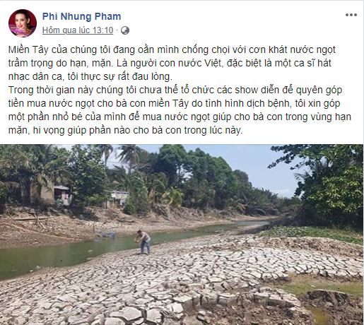 12/03/2020 22:10MC Đại Nghĩa, Phi Nhung, Thủy Tiên cùng hàng loạt sao Việt kêu gọi ủng hộ bà con miền Tây trước tình hình hạn mặn kéo dài
