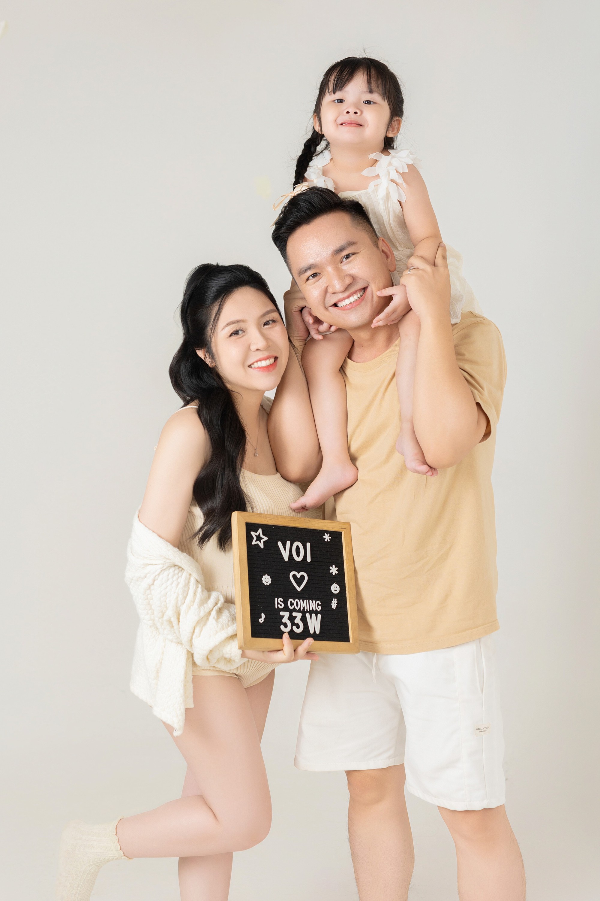"Gửi các con của bố! Tròn 3 năm từ ngày Trứng ra đời, bố lại may mắn đón nhận thêm một niềm vui lớn lao khác. Mẹ mang bầu em Voi. Như vậy là Trứng sẽ có thêm em, không còn phải chơi một mình nữa.