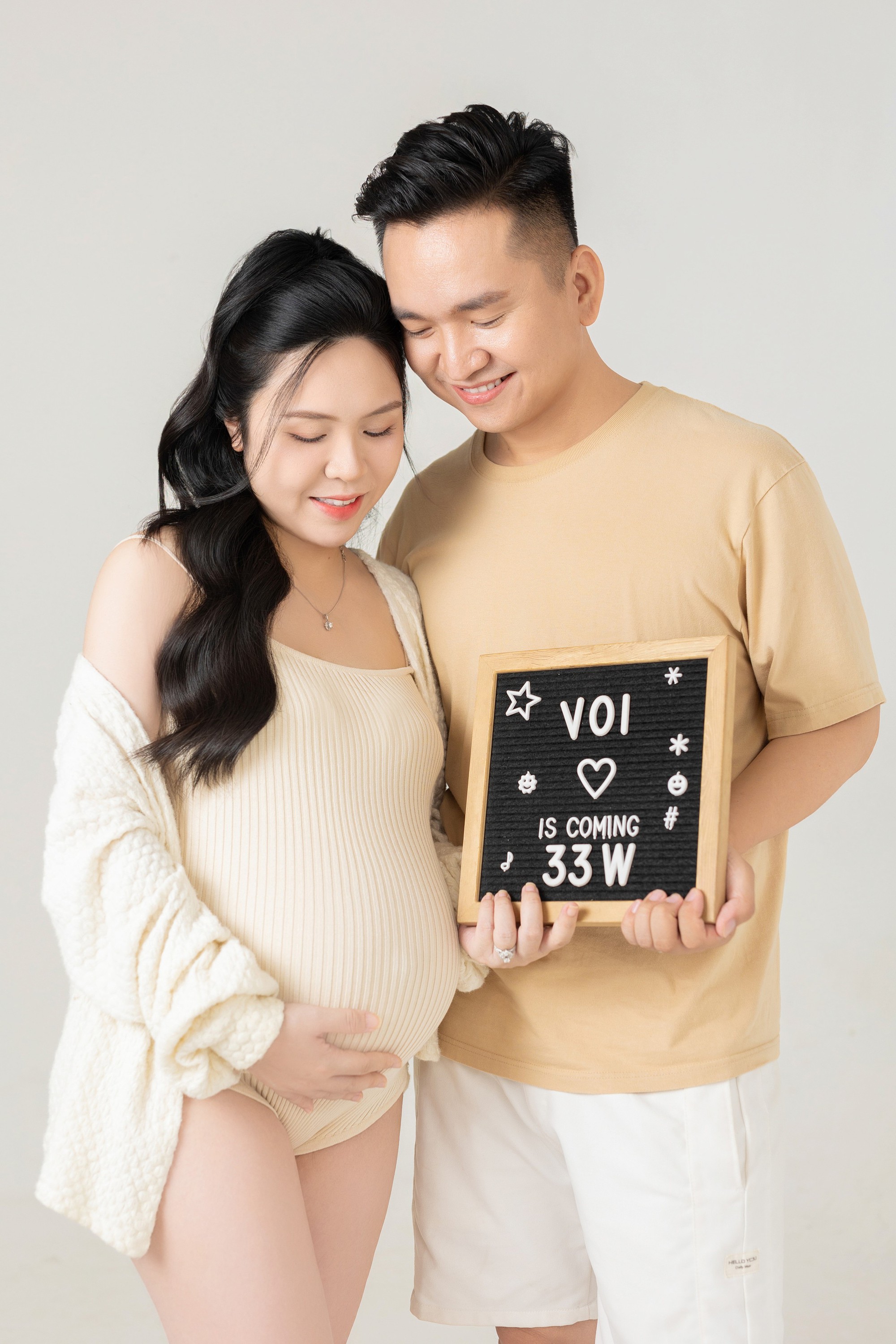 "Voi này, bố mẹ háo hức chờ đợi con từng ngày, từng giờ, cũng y như lần đầu tiên có chị Trứng. Cảm giác hạnh phúc, hồi hộp ấy vẫn vẹn nguyên nhưng lần này cũng thêm phần lo lắng khi con phát triển nhanh, nặng cân hơn các bạn cùng tuổi thai.