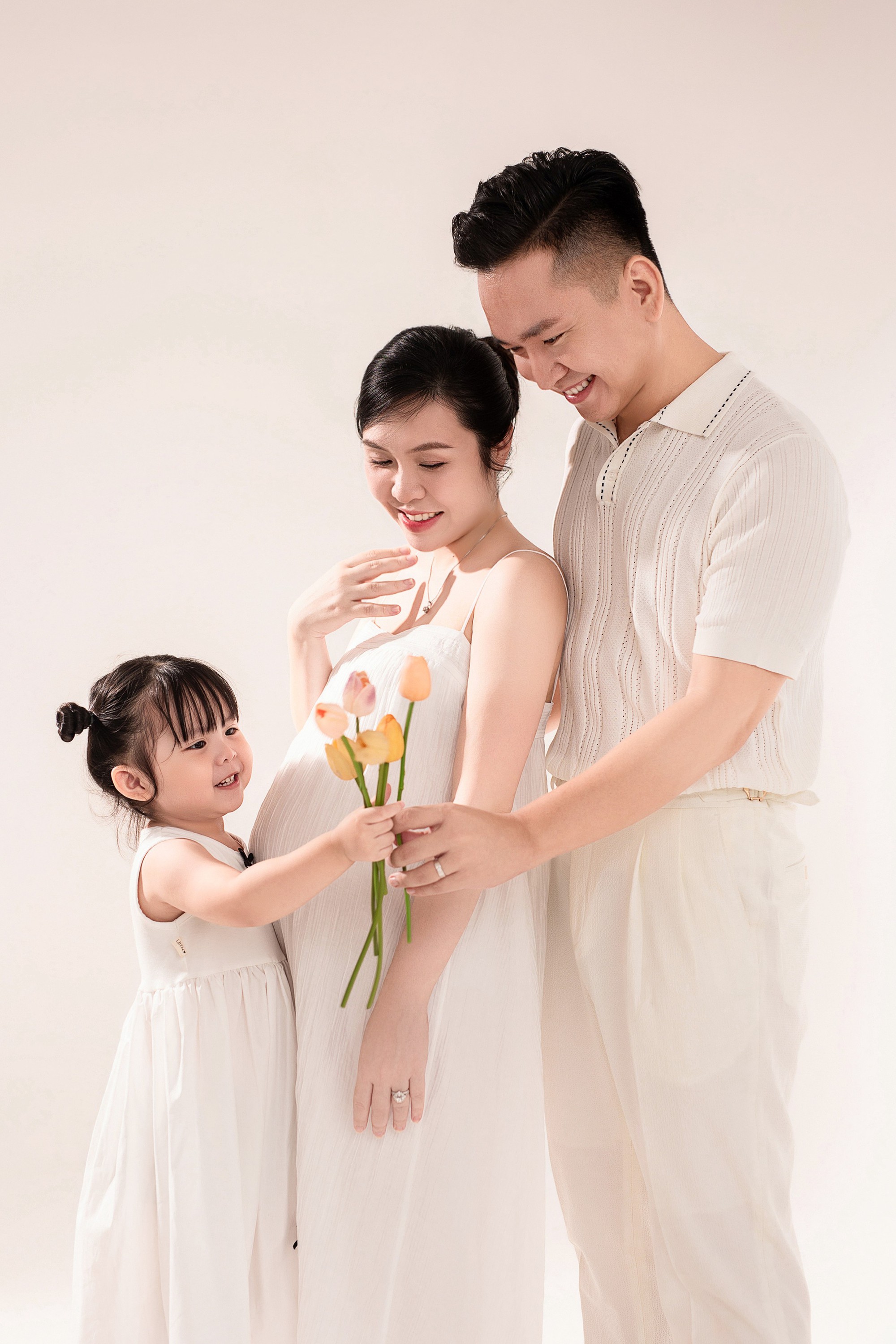 MC Hạnh Phúc cho biết, trước khi đăng tải anh đã hỏi ý kiến của vợ và được cô đồng ý. Nam MC kể lại lần đầu tiên được làm bố cách đây 3 năm và niềm hạnh phúc khi chờ đón người con thứ 2 sắp ra đời: