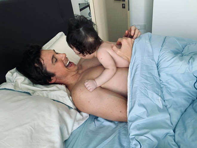 Trong lần đầu được tận mắt nhìn thấy và bế con trai nhỏ, ông xã Hoàng Oanh đã có cảm xúc như thế nào?