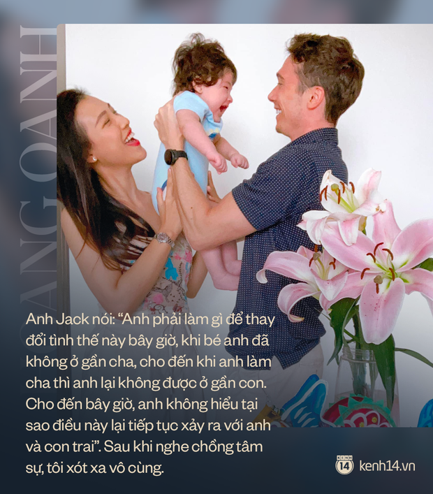 Có một lần anh Jack nói một câu rất xúc động, khiến tôi chỉ muốn tìm mọi biện pháp để bế con đi mà thôi. Anh Jack nói: "Anh phải làm gì để thay đổi tình thế này bây giờ, khi bé anh đã không ở gần cha, cho đến khi anh làm cha thì anh lại không được ở gần con. Cho đến bây giờ, anh không hiểu tại sao điều này lại tiếp tục xảy ra với anh và con trai". Sau khi nghe chồng tâm sự, tôi xót xa vô cùng.