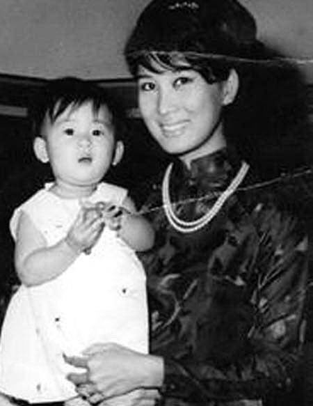 Bức ảnh mẹ Kỳ Duyên bế Kỳ Duyên khi còn bé. |