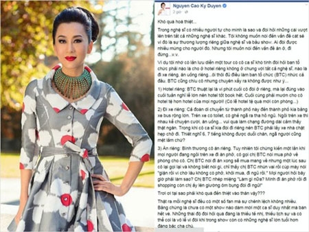 Tôi không đề cập tên đều có lí do cả. Thật sự, khi tôi viết những dòng chia sẻ đó, tôi chỉ muốn cho người ca sĩ đó biết họ là ai và nhắc khéo người đó. Tôi không muốn bôi nhọ hay làm quần chúng ghét người đó. Tôi hi vọng đừng ai nghi ngờ người đó là Mỹ Tâm hay ca sĩ nào khác vì rất tội nghiệp. Tôi không hiểu tại sao mọi người lại nghĩ đó là Mỹ Tâm vì không có lí do gì để nghĩ như thế.