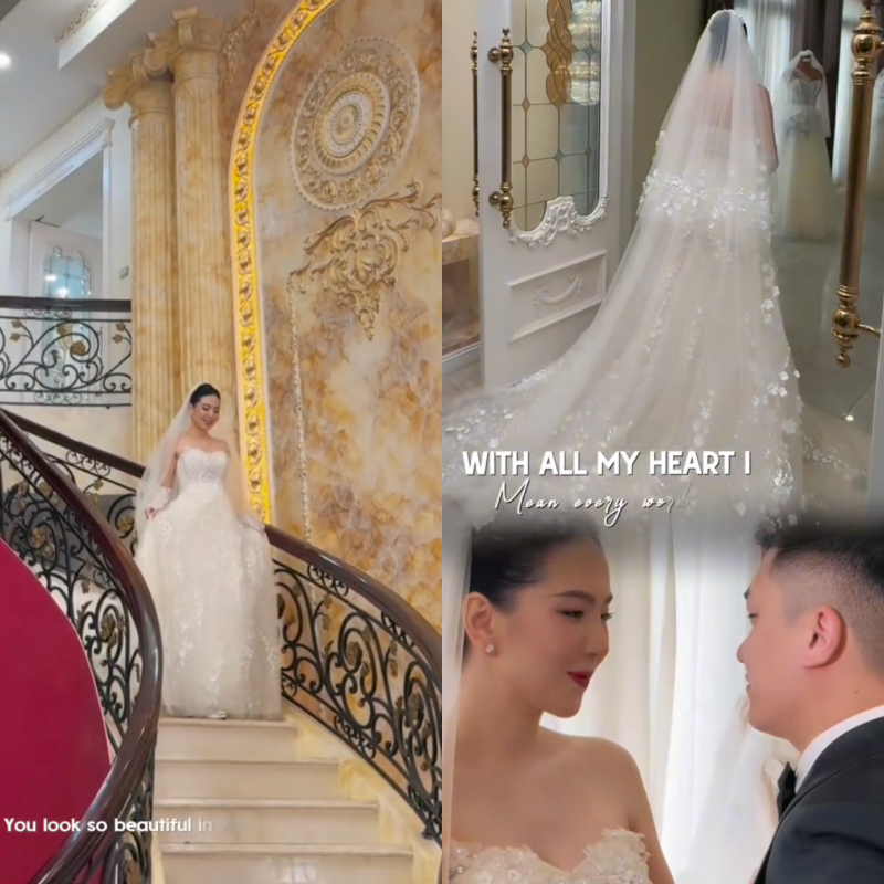 Ngoài ra, một chi tiết cũng gây chú ý trong clip 30 giây của Mai Ngọc chính là khung cảnh bên trong biệt thự nhà thiếu gia Bắc Giang. Khoảnh khắc Mai Ngọc diện váy cưới bước xuống từ một phía cầu thang đã phần nào hé lộ gia thế gây choáng của chồng. Theo đó, cơ ngơi của ông xã Mai Ngọc rất bề thế, xây dựng theo phong cách cổ điển kết hợp với hiện đại.