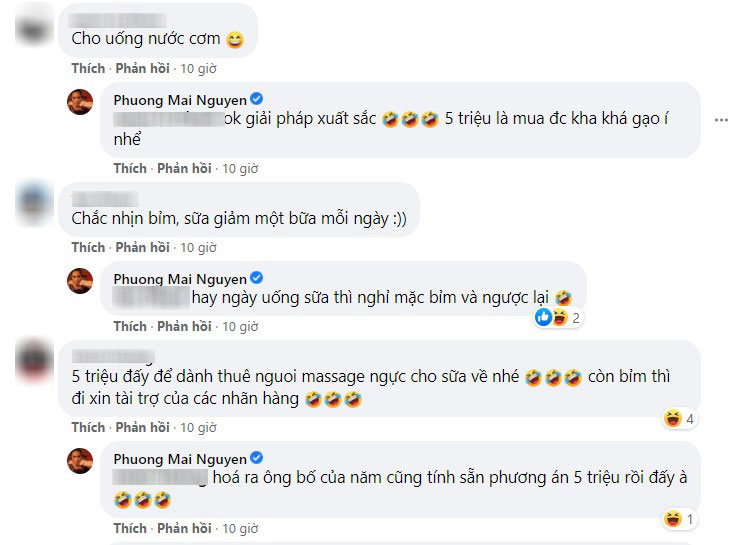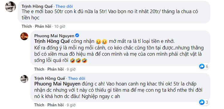 Cũng là một bà mẹ bỉm sữa và thấu hiểu cảnh nuôi con vất vả, MC Phương Mai mới đây đã không ngần ngại lên tiếng về lùm xùm của Jack. Cô viết trên trang cá nhân: "1 hộp sữa gần 900 ngàn 1 tuần 2 hộp, 1 tháng khoảng 7 triệu tiền sữa. 1 túi bỉm gầm 400 ngàn, 1 tuần 2 túi, 1 tháng khoảng 2 triệu tiền bỉm. 5 triệu 1 tháng tiền nuôi con thì mua bỉm hay mua sữa giờ".