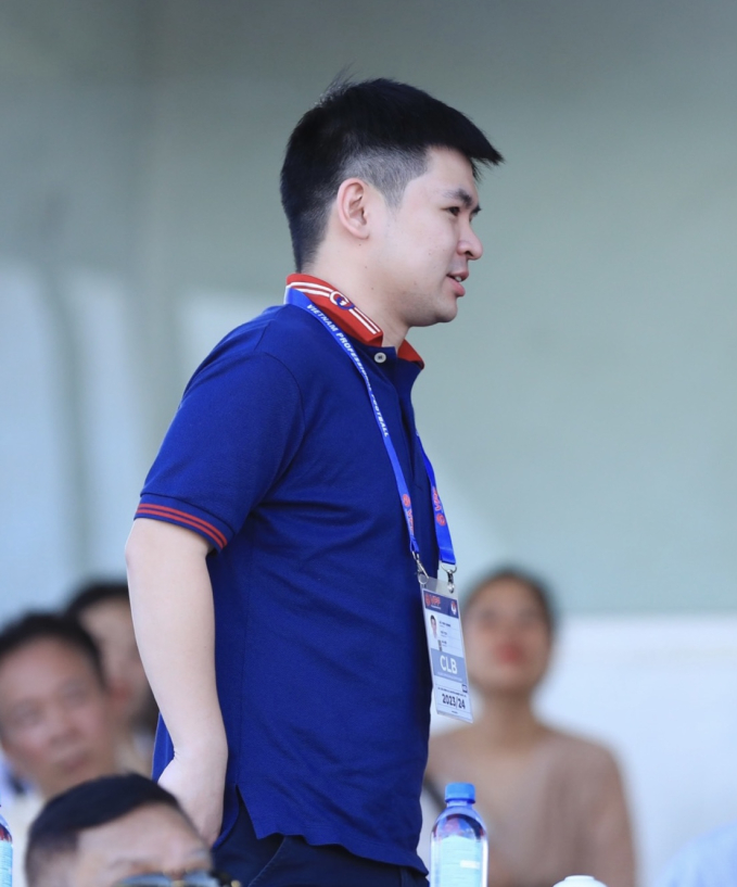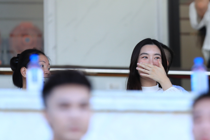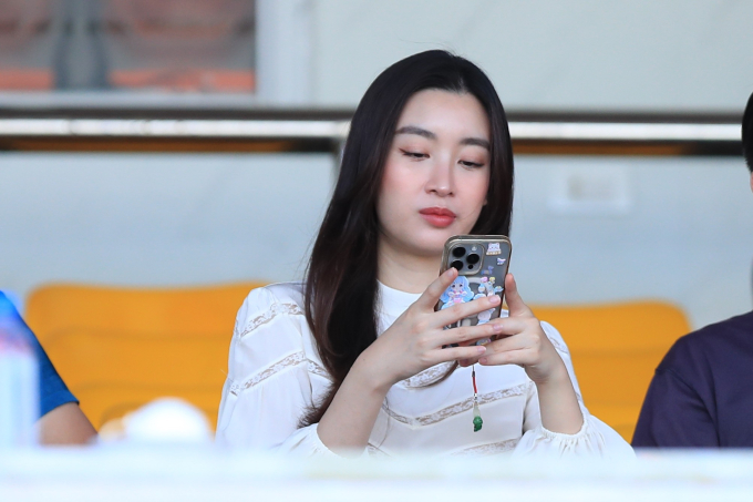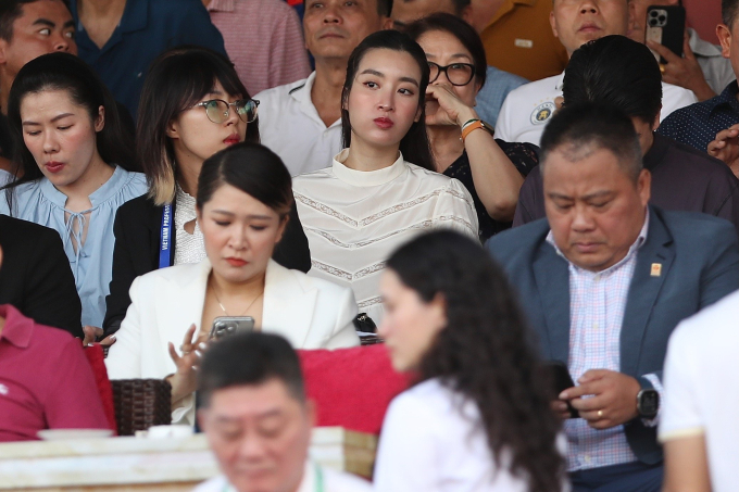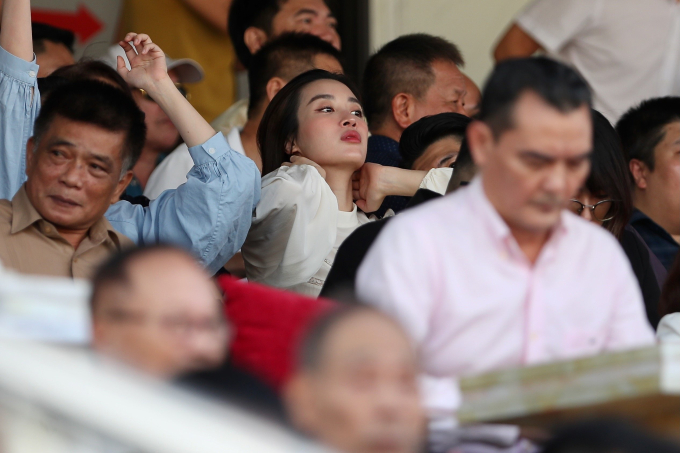 Hoa hậu Đỗ Mỹ Linh đến sân Thanh Hoá cổ vũ đội bóng của chồng chủ tịch CLB Hà Nội.
