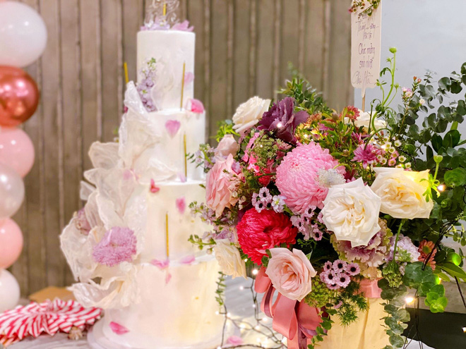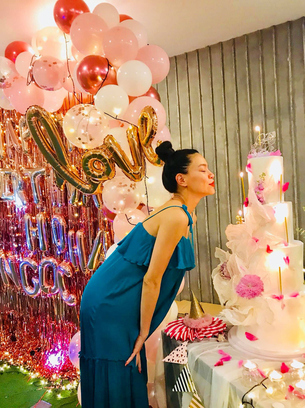Theo lời hội bạn chia sẻ, tranh thủ lúc Hà Hồ đang cho 2 con ngủ thì cả nhà và ekip đã bí mật chuẩn bị bữa tiệc sang chảnh, lộng lẫy nhưng không kém phần ấm cúng này ngay tại căn hộ của cô. Vì không hề biết kế hoạch của mọi người nên bà xã Kim Lý ăn mặc rất đơn giản với váy 2 dây và tóc búi cao gọn gàng. Dù vậy, cô vẫn gây ấn tượng mạnh nhờ thần sắc tươi tắn, rạng rỡ không hề giống một bà mẹ mới sinh con gần 1 tháng chút nào.