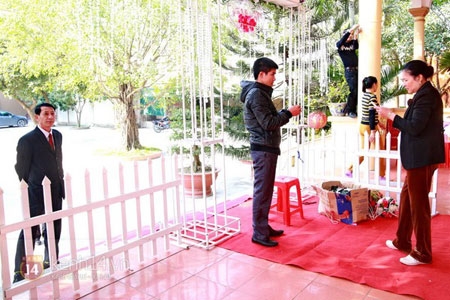 Tại quê nhà Nghệ An, không khí diễn ra lễ cưới của cặp đôi vàng Vbiz Công Vinh - Thủy Tiên đang được tất bật chuẩn bị.