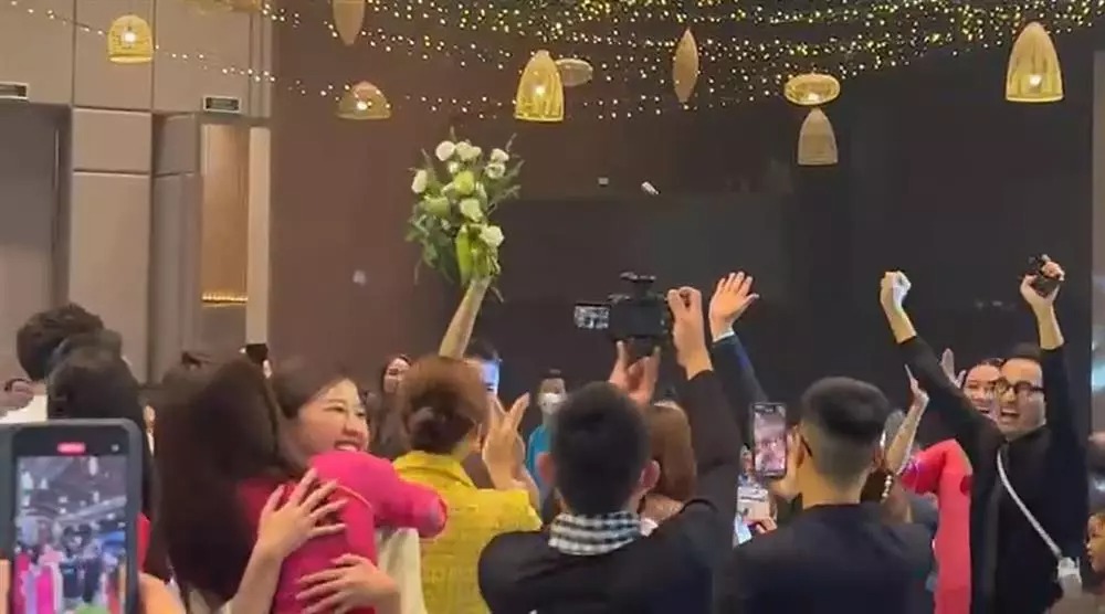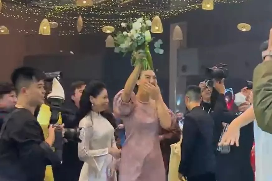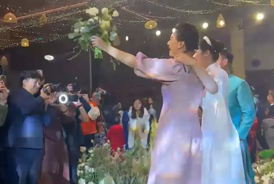 Hồng Quế bắt được hoa cưới Ngọc Hân, nhiều người hy vọng đây sẽ là pha "truyền may mắn" thành công.